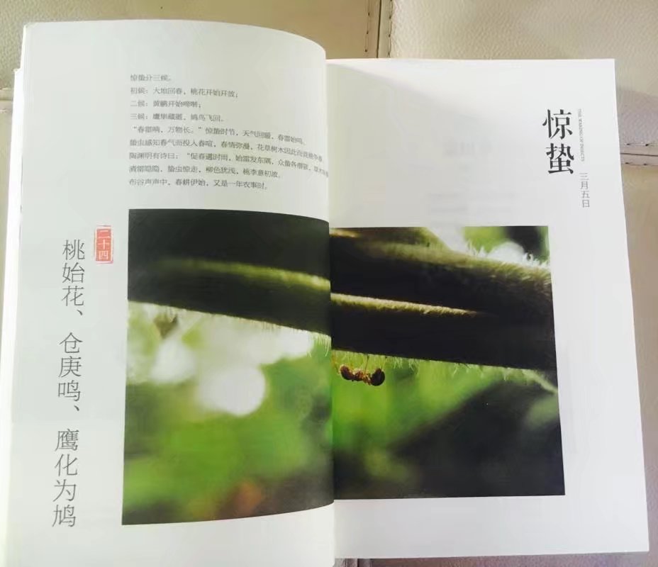 此刻,我手捧紫菱图书馆选编的《阅读日志》。这本书没有页码,四季就是它的章节,二十四节气就是它的序列。每一个日子在纸页上都写满了古今中外诗的光辉、歌的旋律、散文的闲适、绘画、摄影作品的光和色彩。