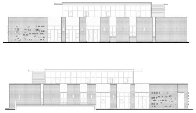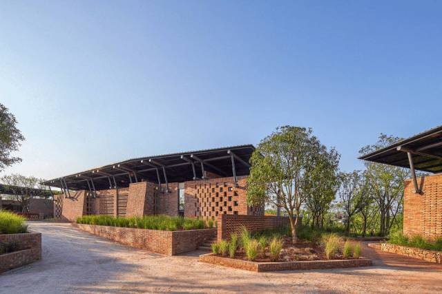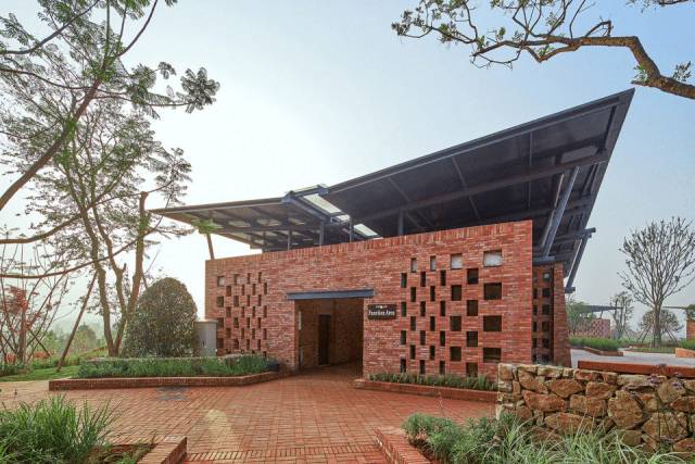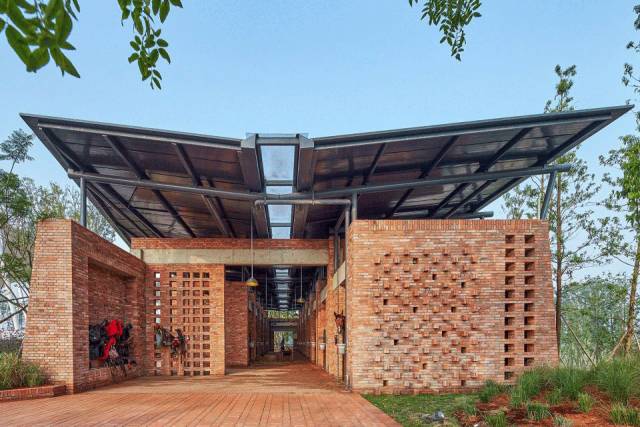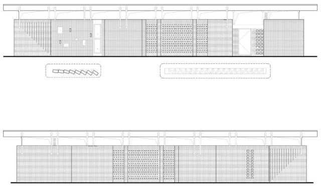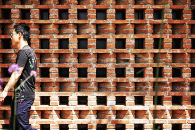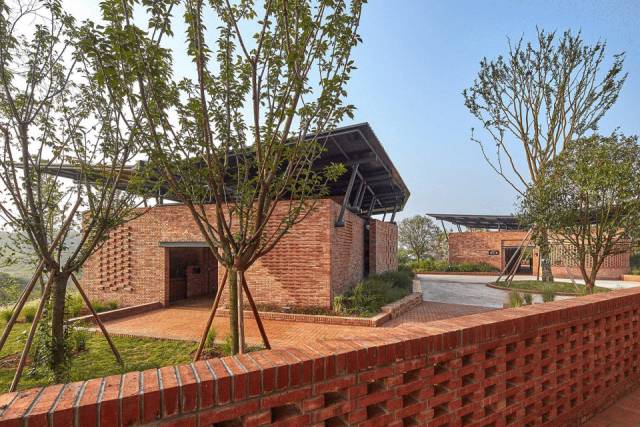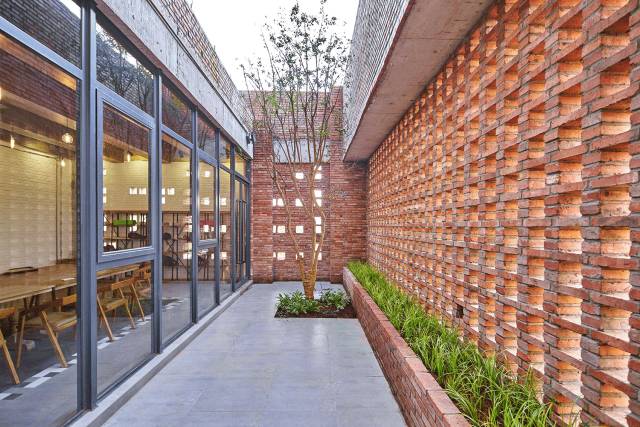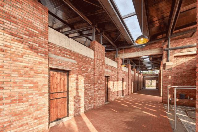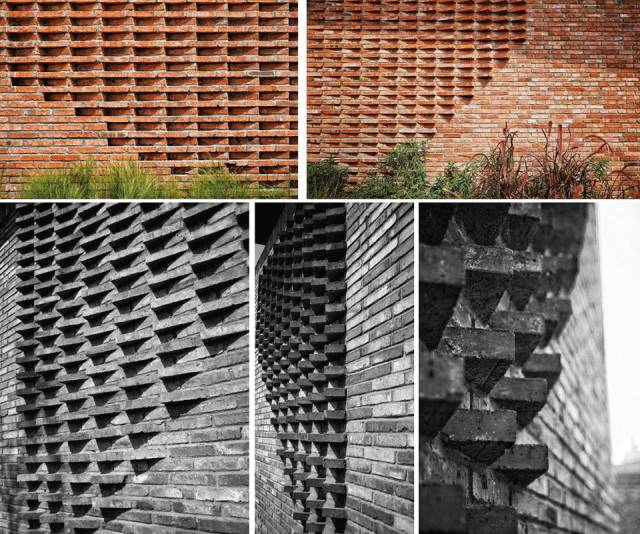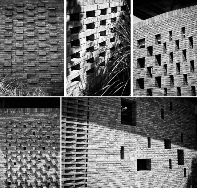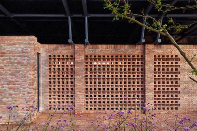 建筑立面通过砖的不同组合带来节奏感,从小到大,紧凑到疏松,密集到分散;各式各样的镂空,堆砌为看似粗糙的砖墙带来新生,也暗示了内部使用功能的变化。
