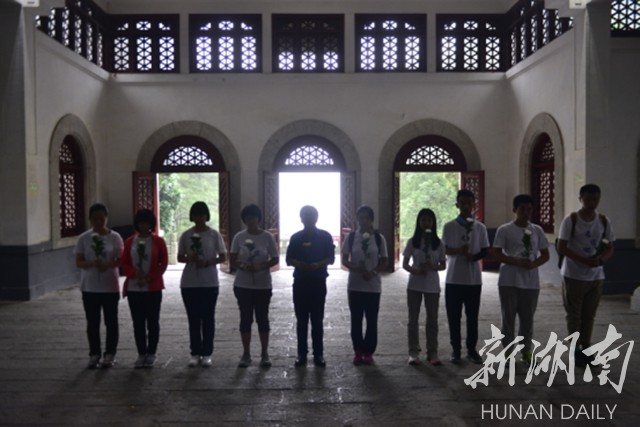 我们踩过276级台阶,在忠烈祠内举行了隆重的祭奠仪式。我们整齐地站成一排,每人手拿一只白色的菊花,朝着纪念碑三鞠躬,随后逐次把鲜花放在碑牌的中央,静默。气氛是凝重的、严肃的;而心中是崇敬的、高昂的。