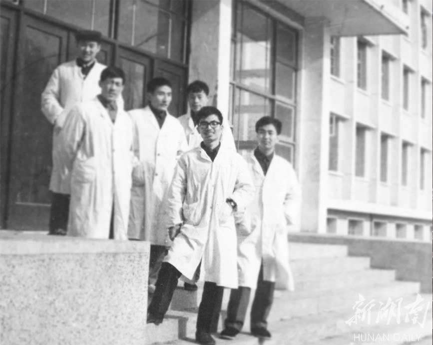 1978年,安徽医学院解剖楼前郝伟(图右二)与同学合影。