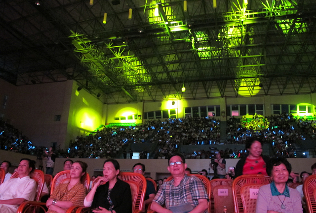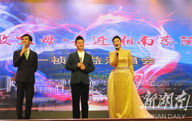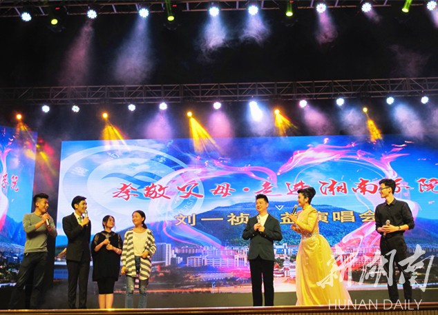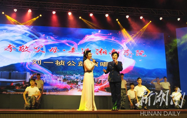 新湖南客户端6月17日讯(颜石敦 姚铮铮)“月儿明风儿静,枝叶儿遮窗棂啊……娘的宝宝闭上眼睛,睡了那个睡在梦中……”6月17日晚,“孝敬父母·走进湘南学院”——刘一祯公益演唱会,在一曲饱含母亲对孩子浓浓爱意的《摇篮曲》中拉开帷幕。郴州市民、湘南学院学生及嘉宾等数千人,在湘南学院体育馆观看演出。