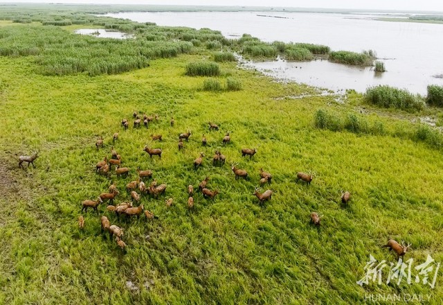 (洞庭湖的麋鹿 来源:岳阳市林业局)