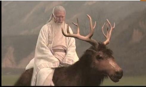 (电视剧《封神榜》中,姜子牙骑在以麋鹿为原型的“四不像”上。来源:网络)