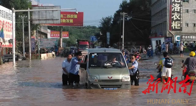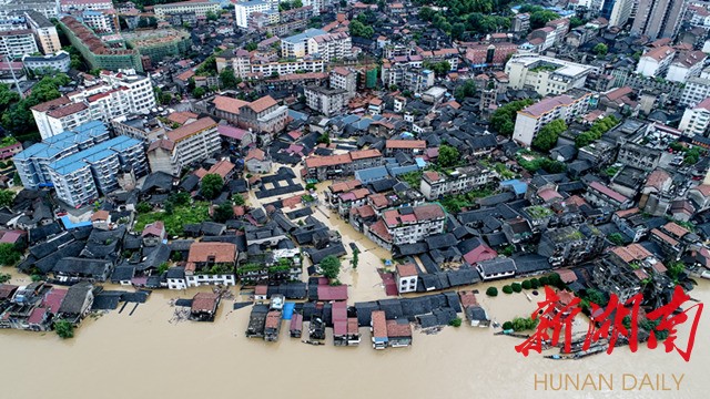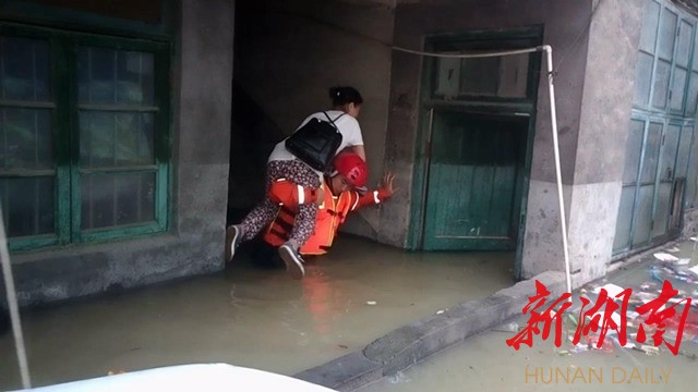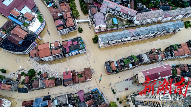 6月30日,溆水和沅水交汇处的溆浦县大江口镇水位暴涨,沿江民房被淹。涉江社区党支部书记向慧梅带领4位女党员干部劝说最后一位老人转移,当时洪水离他们只有20米远。