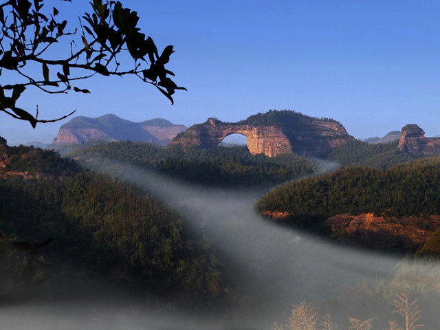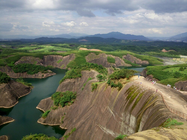 郴州飞天山国家地质公园属典型的丹霞地貌,位于湖南省郴州市苏仙区境内,距市区18公里,总面积110平方公里,水陆交通便捷,东侧紧邻郴永大道,西侧京广铁路复线、京珠高速公路、107国道从旁而过。郴江、东江交汇于此,形成享誉江南的翠江风景带。整个风景区由48谷、9寨、4坦、3庙、2江、1泉构成,以丹岩堡寨为特色,穿坦、洞穴为罕见,温泉碧江为纽带,石佛悬棺为史脉,集山、水、林、洞、佛为一体,聚雄、奇、险、秀、巧为一身。2001年飞天山被国土资源部评为丹霞类的地质公园,2014年被评为国家AAAA级旅游景区。