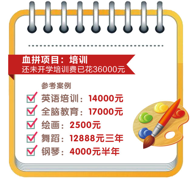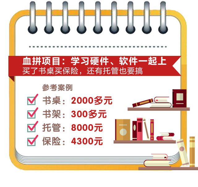 另有一位家长赵明除了给孩子花2500元买书桌、报名培训班,他还干了一件事情:买保险。“疾病保险,每年4300元,买20年。孩子上一年级后,一天有近8个小时不在家长的视线范围内,以防万一还是买保险更心安。”