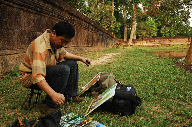 (陈飞虎在柬埔寨写生。)
