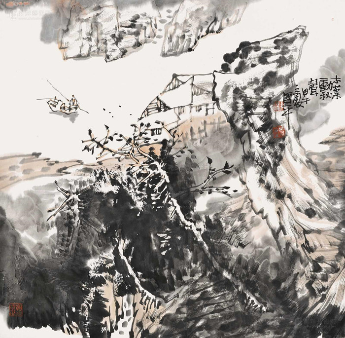 杨国平作品《木叶动秋声》(纸本设色 68×68cm 2014年)