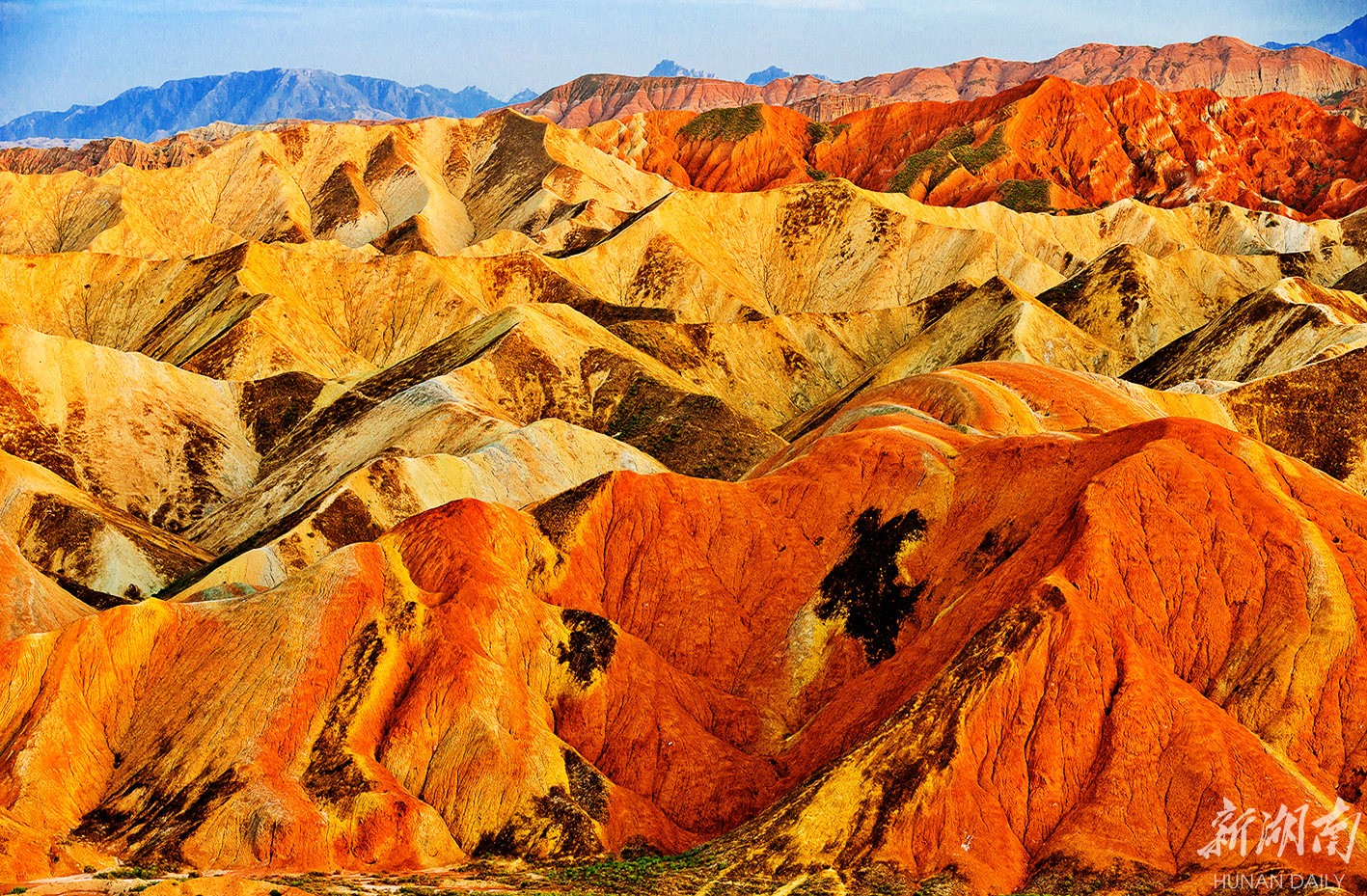 张掖丹霞,被评为中国最美的七大丹霞地貌之一,2011年被美国《国家地理杂志》评为"世界10大神奇地理奇观"之一。这里气势之磅礴、面积之广阔、色彩之缤纷、实属大自然之鬼斧神工,红、黄、橙、绿、黑、褐、青、灰在阳光的照射下,浓烈地交织在一起,色调或如波浪顺着山势起伏,或从山顶倾泻而下,犹如斜铺的彩条布,难怪被称为上帝打翻了的调色板。