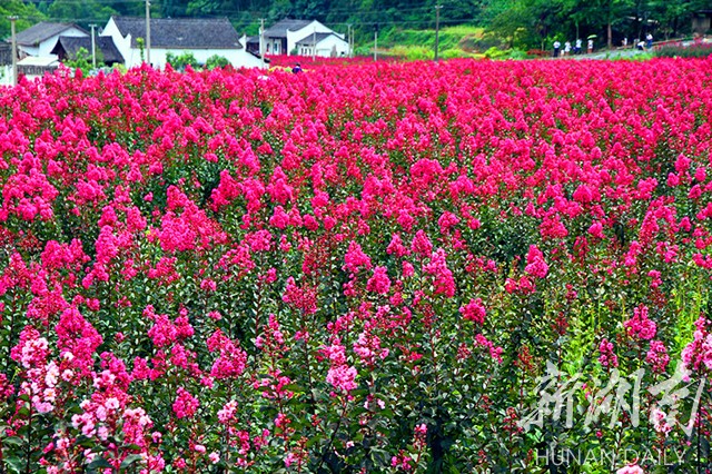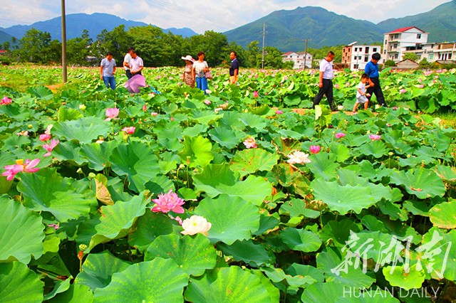 新湖南客户端8月14日讯(记者 邹仪 通讯员 杨万里 吕娟娟)8月13日,周末大清早,“永州之野”乡村旅游精品线路富家桥镇贤水河沿路至何仙姑村、周家大院车水马龙、人来人往,来此观荷花、赏紫微花、看向日葵花、过漂流瘾的人像市场赶集赶社似的。从广东东莞开着小车带家人来永州市度暑假的张林森大叔在看了涧岩头千亩荷花、向日葵花和十里紫微花海后对记者说,“没想到家乡乡村旅游发展得如此之快,家乡景点如此之多,不但绿色环保、生态水灵,而且比大城市公园还漂亮”。