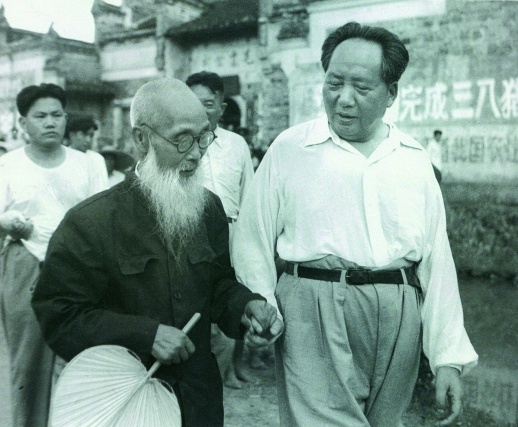 ▲毛泽东和他的老师毛禹居携手而行。侯波摄