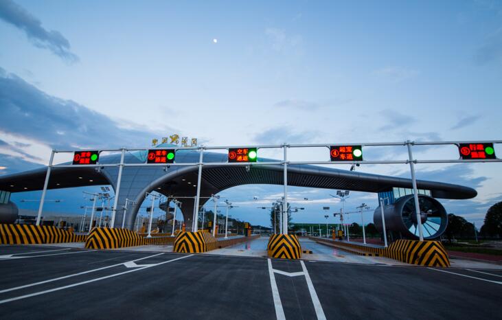 (2017年6月25日,满载着长沙黄花综合保税区首批货物的卡车通过主卡口进出通道,并按照各通道电子指示牌指引,有序驶入综保区,标志着湖南省首个临空型综合保税区——长沙黄花综合保税区正式封关运行。彭国明摄)