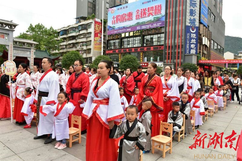 近千名身着汉服的幼儿园萌娃、老师及家长,整齐得坐在台前,举行“开笔礼”仪式,以弘扬传统文化的方式迎接国庆佳节。