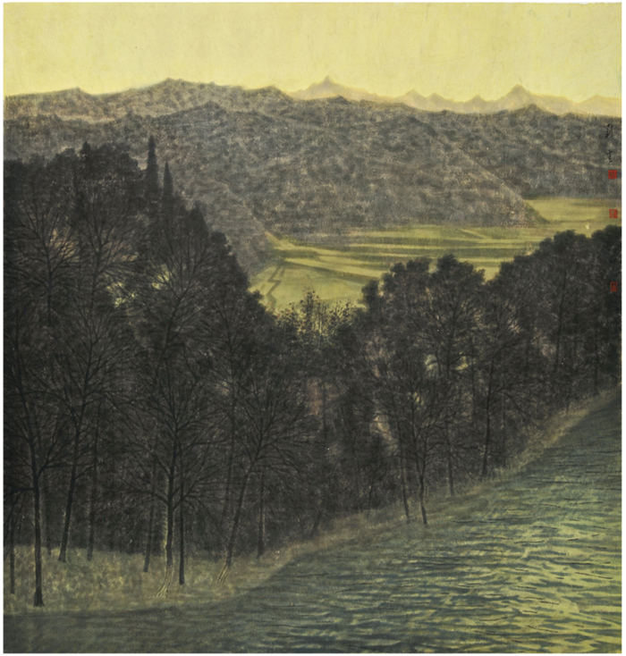 相对于清竣的高峰,绵延起伏的山丘更亲切可触,像摇篮,也像温床,充满人情味。这里的山离不开水、庄稼和田垄。即使画面中没有一个人,甚至一只动物,光影深处,人语依然隐隐闪现,炊烟依然袅袅升起。