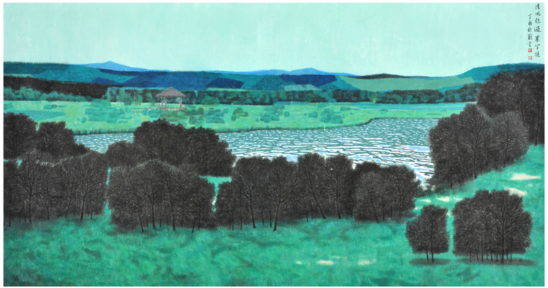 清风掠过·塞罕坝124×236cm 纸本设色 2017年