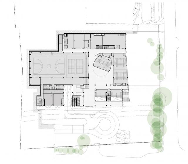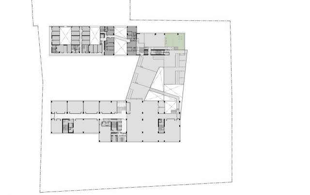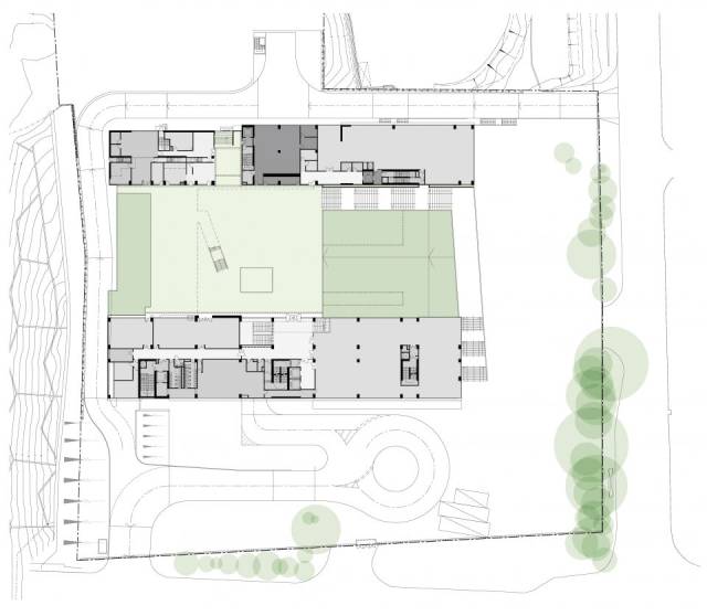 ▼顶层的课室呈Y字形向外悬挑,引入阳光与自然对流