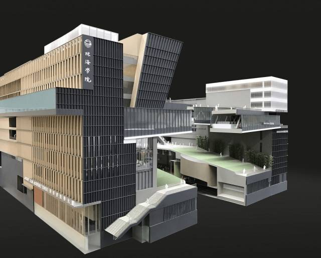 珠海学院新校舍的建筑,充分突显一所高度互连互扣的学府。设计参考了香港高密度都市的特质,把垂直功能叠加及立体交通的概念融入校舍的设计中,把珠海学院设计成一个高度连扣,高度密集的城市缩影。