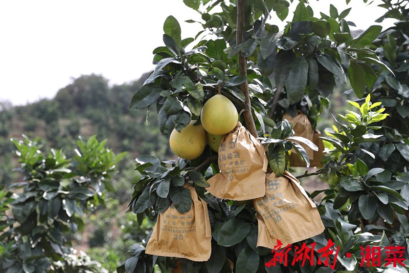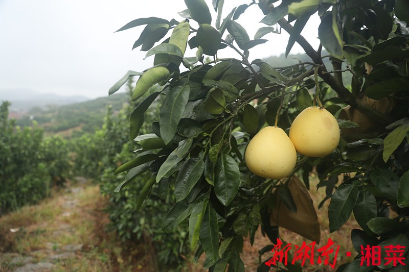 双峰县界牌村朱会同、彭富生夫妇从2009年起就开始种植红肉蜜柚,至今已经8年,种植面积大约80亩。与他们相邻的还有界牌村其余农户的400余亩蜜柚林,密密麻麻的柚子树绵延好几个山头。多年来这80亩蜜柚林一直是夫妻俩共同打理,只有在套袋、施肥等农忙时节才会请各邻各户帮忙。柚子一般在春天抽芽开花,夏天开始挂果,秋季渐趋成熟。一般在10月左右可开始采摘。不过柚子皮厚耐藏,一般可存放三个月而不失香味,所以在次年元旦前都可以采摘。