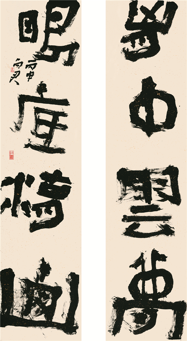 崔向君作品《胸中眼底联》(篆书对联 2016年 230cm×53cm×2)