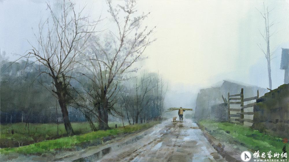 黄铁山作品《那人那狗》(56×99cm 2009年)