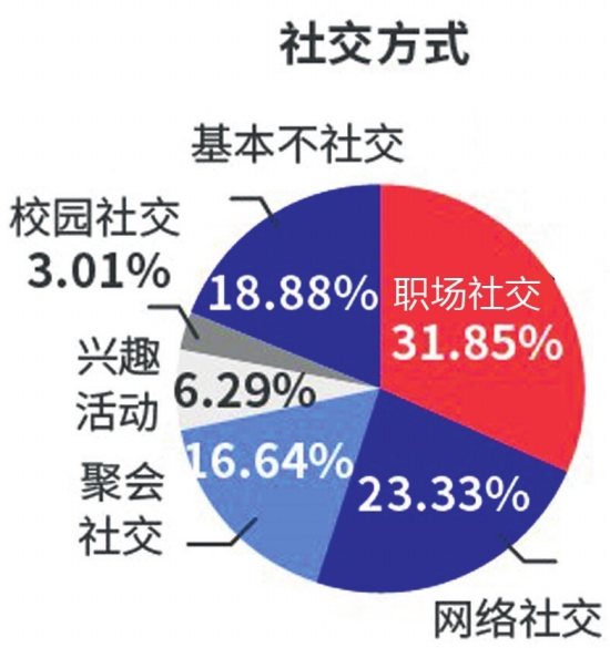 正是由于当代90后的生活方式越来越宅,他们的社交方式逐渐向职场和网络社交转化。数据显示,在各类社交方式中,有31.85%的单身90后将“职场社交”视作首选社交方式,其次为“网络社交”(23.33%)和“聚会社交”(16.64%),可见工作占据了90后越来越多的时间。