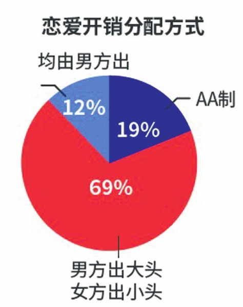调查发现,有8成90后单身男女不赞成在恋爱期间AA制。其中有69%赞成“男方出大头,女方出小头”,12%赞成“均由男方出”,仅19%表示恋爱后消费应AA制。