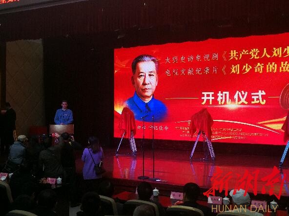 11月24日,大型史诗电视剧《共产党人刘少奇》在宁乡花明楼刘少奇同志纪念馆举行开机仪式。这是第一部全景展现刘少奇同志不平凡人生历程的电视剧,由湖南和光传媒有限责任公司等投资拍摄,嘉娜·沙哈提执导,海波担任总编剧,实力演员赵波饰演刘少奇。他们表示,这是一个无比光荣的任务,同时也是一个极其艰巨的挑战,更是一份沉甸甸的历史责任。