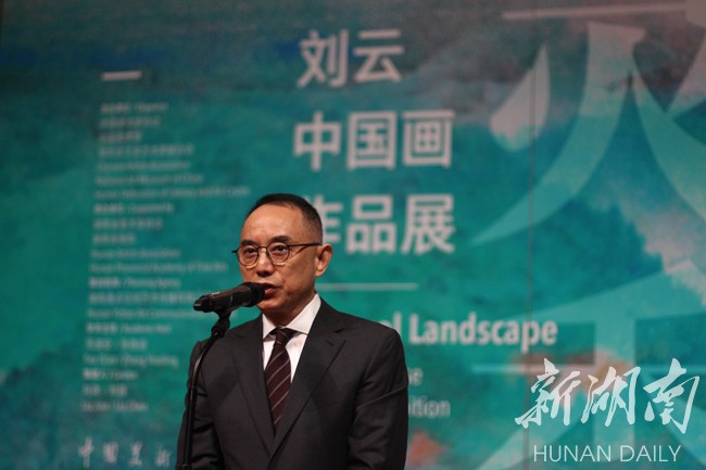 湖南省文联副主席、省画院院长、此次画展的主角刘云致答谢辞。记者 李婷婷/摄