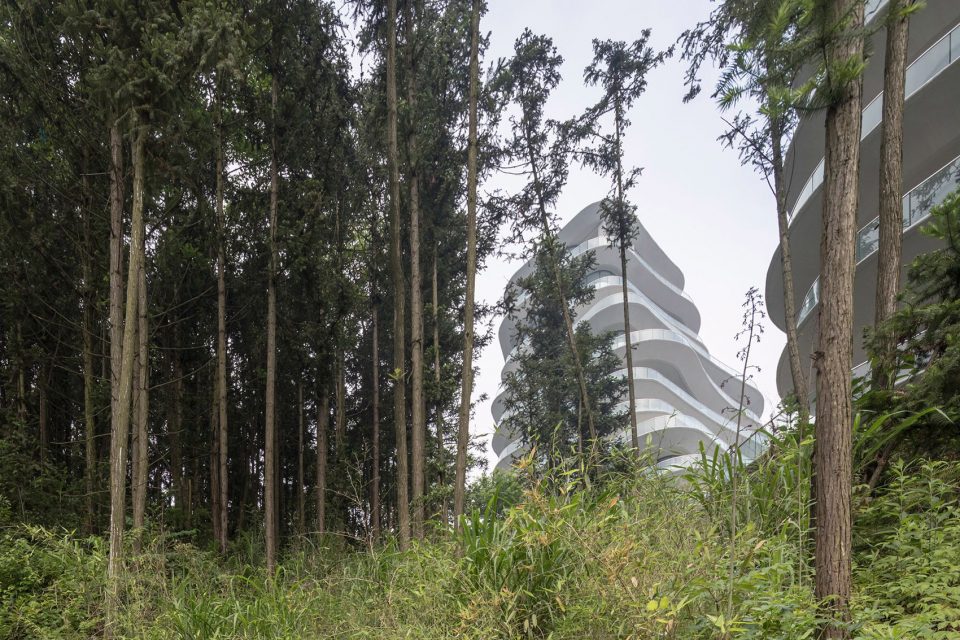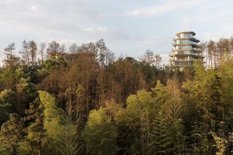 黄山太平湖公寓是MAD所设计的黄山太平湖旅游区整体规划的一部分,所在地原为布满茶田的小山丘,曲径通幽,依太平湖而立,山水之间,有着诗人画家曾经有的诗句和画中的意境,是人在自然中感受的一种精神境界。MAD的设计将10栋高矮不一的建筑,沿着湖边错落有致地自然地散落在太平湖边的山脊上,就像是山的一部分,因山势而缓缓“生长”。每栋公寓楼不一的建筑外形及公寓楼间不一的水平高度差,发生了有趣但和谐的呼应,整体就像是山间依山而立的竖向排布的村庄。建筑在山水中,与天地自然融为一体。