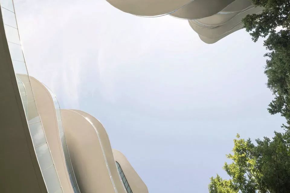 ▼建筑每层阳台有机流动的线条