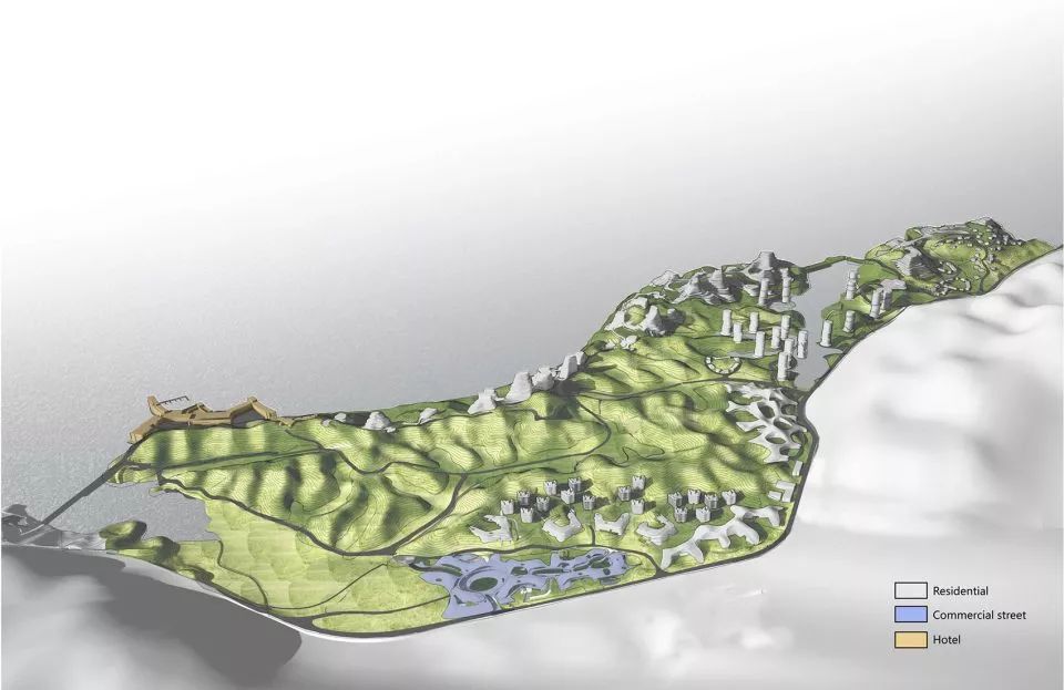▼10栋高矮不一的建筑沿着湖边错落有致地散落在山脊上