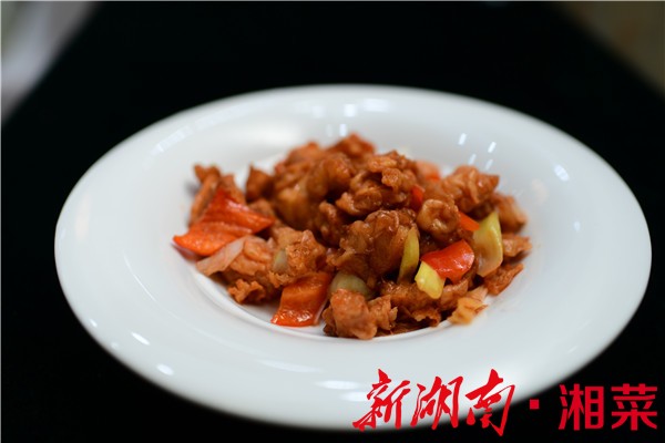 5、左宗棠原味鸡:说起这道菜,自然少不了典故:1952年,美国太平洋第七舰队司令雷德福特访台,台湾负责接待的海军总司令梁序昭连续三天设宴款待,并请彭长贵掌厨,雷德福特品尝了这道菜,询问菜名,彭长贵随口起名:“左宗棠鸡”。本次制作是由左宗棠大酒店全权负责。有别于以往,没有采用以往传统做法中的去骨鸡腿肉,而是用鸡胸脯肉切成2CM×2CM大小的鸡丁,用葱、姜、蒜、料酒腌制一小时至鸡丁入味。热锅起热油将鸡丁过油炸至金黄后捞出备用。另起一锅放入橙汁、番茄酱、姜片、大葱、盐、味精、鸡精、胡椒粉和香油炒成调汁放入鸡块翻炒均匀即可出盘。鸡块外焦里嫩,较之传统做法,没有了辣味,但酸甜适中,口感新奇。