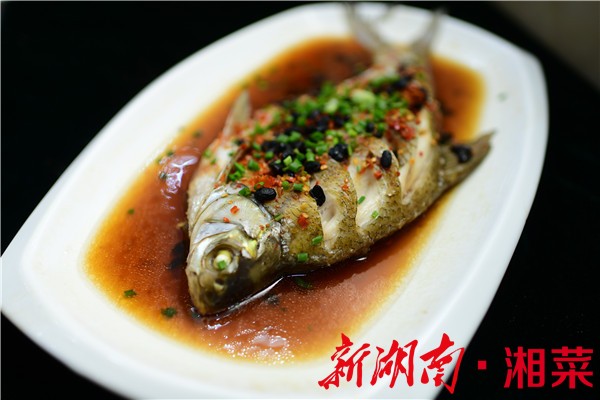 8、豆辣蒸鳊鱼:这是一款在清蒸的基础上进行了创新的蒸鱼,同样由湘阴宾馆精心制作。辣豆豉的出场可谓是别出心裁,新鲜鳊鱼上放入姜片、葱丝、料酒、辣椒粉、豆豉、蒸鱼豉油及盐抹匀蒸熟即可。为保持鱼肉的鲜嫩可口,蒸制时间不能过久。细嫩的鱼肉配上辣味的汤汁与豆豉渗入的绵香,又辣又鲜,口味丰富多层。