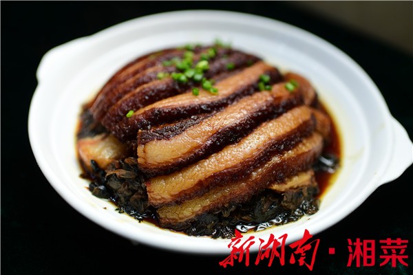 10、岳州窑酸菜扣肉:岳州窑的酸菜又是湘阴本地的特色之一。把精品五花肉蒸熟后再油炸改刀切大片,放入鸡精、味精调味后,将岳州窑酸菜覆在扣肉上蒸熟,出锅盘子倒扣,撒上葱花点缀即可。较之其他地方的梅干菜,岳州窑的酸菜新鲜软嫩,与肥而不腻的五花肉搭配到一起所产生的化学反应非常奇妙,酸菜的清香中和了五花肉的油腻,吃完一口还想再来第二口。