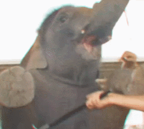 小象需要花一个月来学习把刷子挂在鼻子上,这些刷子会塞进它们敏感的鼻子里。而一旦画错,象钩和钉子就会刺进它们的耳朵。