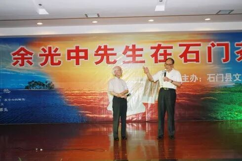 今年五月,我与余先生又一次不期而遇。这次是石门县邀请他过来的,我们只是第二主人,但是主办方和余先生都非常高兴有元洛兄和我与他一路同行。余先生走出机场见到我们的第一句话就说,哈,我又如鱼得水了。元洛兄便有点酸溜溜地对我说,你看,余先生在说你呢。他姓余你姓水啊。余先生马上兼顾于他,说,还有你。洛字有半边是水嘛。元洛兄便哈哈大笑,拉着他,亲密爽朗地登车出发,夜走石门,开始了那一段无限诗意的旅程。