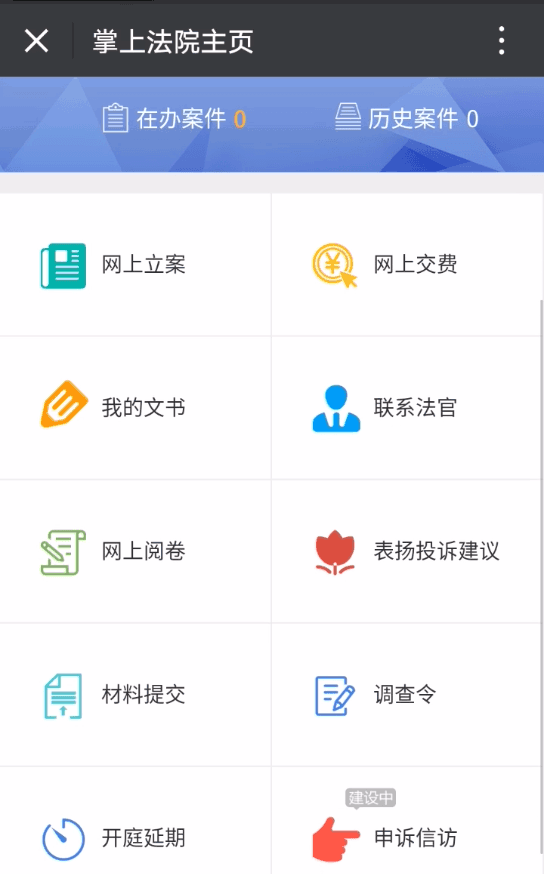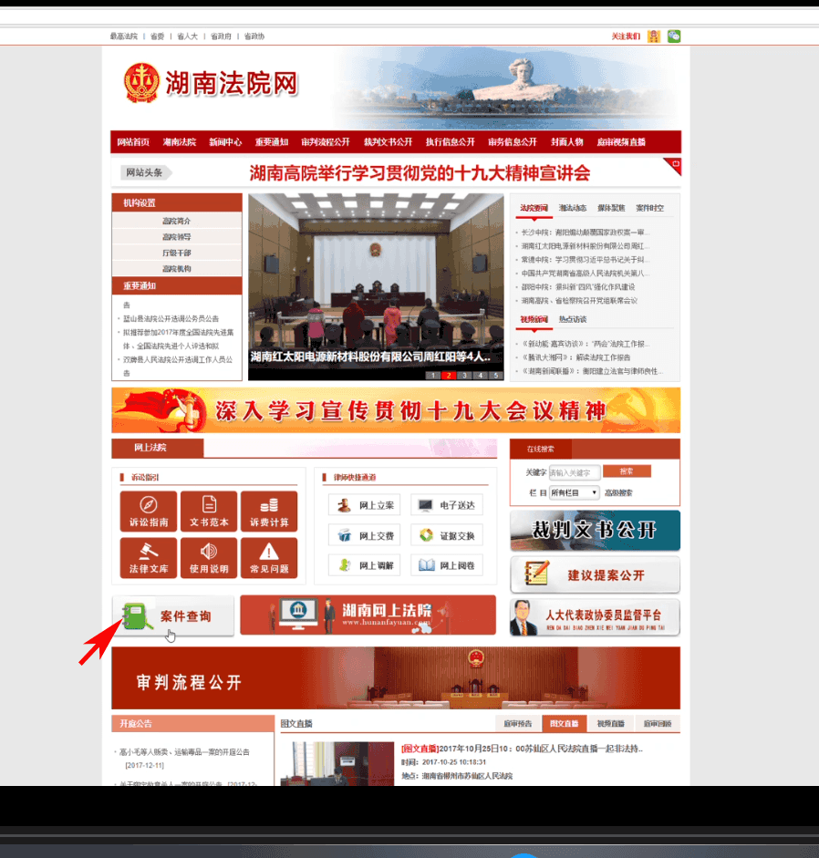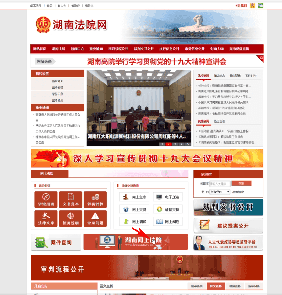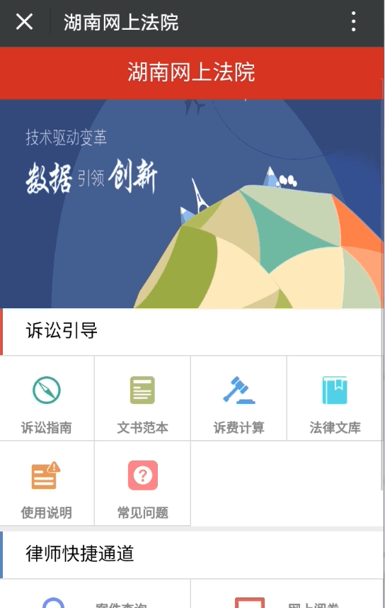1、进入“湖南高院”微信公众号--点击“掌上法院”