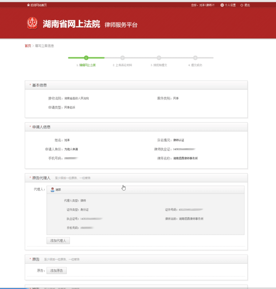 7、填写立案信息,上传起诉状等材料,点击提交!