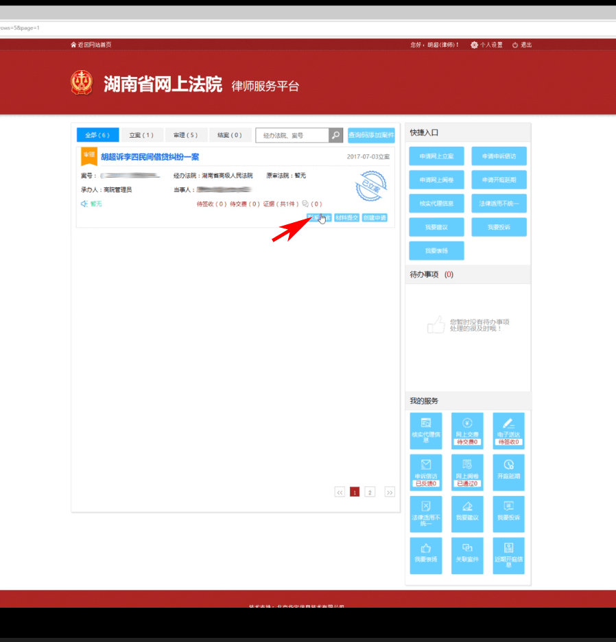 1、进入“律师服务平台”(登录方法参见网上立案)