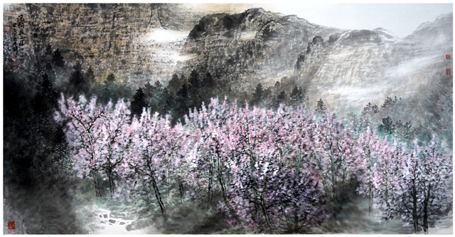 李亚辉作品《泡桐花正旺》(68x136cm)