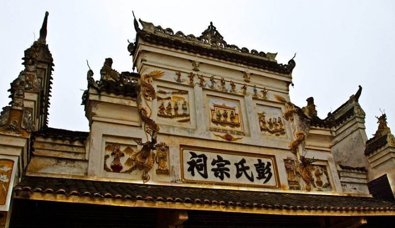 彭氏宗祠 在大冲,又称彭氏诚敬堂。于清乾隆丙戌(1766)年,族人将旧祠扩建鼎新,上立主堂,中建餐堂,下起乐楼。中堂上悬横匾,书“仁孝诚敬”四字,为境内现存结构最完整、着色最鲜美的祠宇。