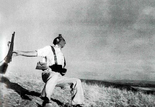 卡帕最著名的一张照片:《一个忠诚战士的倒下》。