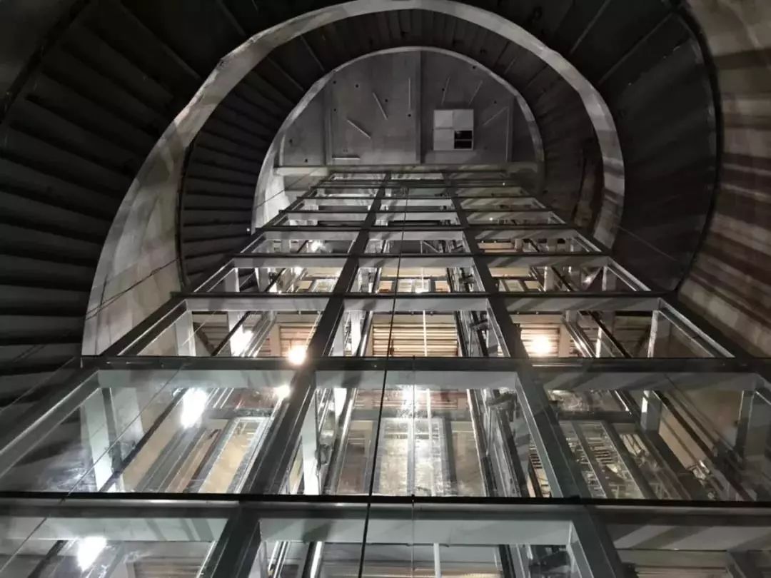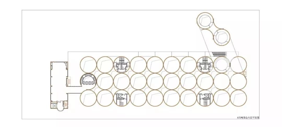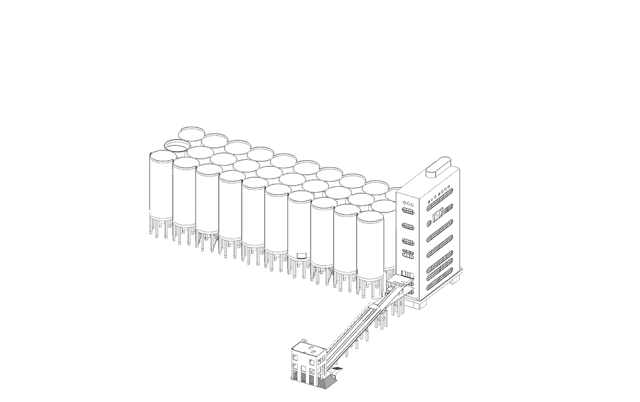 本次艺术季主展馆主要使用筒仓建筑的底层和顶层。由于筒仓建筑高达48米,要将底层和顶层空间整合为同时使用的展览空间,必须组织好顺畅的展览流线,并处理好必要的消防疏散等设施。本次展览流线组织的一个最重要改造动作,是通过外挂一组自动扶梯,将三层的人流直接引至顶层展厅。由是,人们在参展的同时也能欣赏到北侧黄浦江以及整个民生码头的壮丽景观。除了悬浮在筒仓外的外挂扶梯,筒仓本身几乎不做任何改动,极大程度上保留了筒仓的原本风貌,又呈现出“重新利用”所注入的新能量。