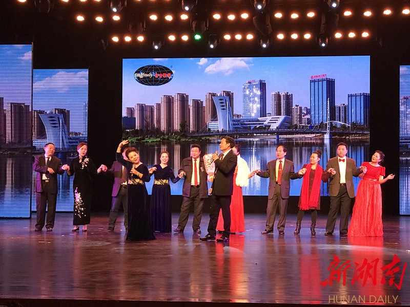 最让人动情的是合唱团里6对夫妻组合带来的情歌串烧。《小小新娘花》《月亮代表我的心》《心会跟爱一起走》等歌曲情深意浓,现场乐队伴奏旋律悠扬,夫妻伉俪歌声婉转,他们动情的演唱,默契的配合,顿时感染了台下的观众,呐喊声、欢呼声将音乐会推向高潮。“我们夫妻在这个积极向上的团队里歌唱,感到非常快乐和充实,学员们也相处融洽,是一个温暖的大家庭。”来自湖南文理学院继续教育学院的副院长韩朝晖高兴地说。他们演唱的《为了谁》博得观众的阵阵掌声。