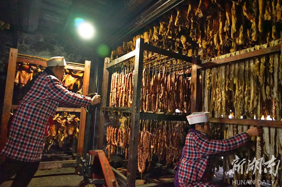 1月13日,湘潭县排头乡狮龙村的村民正加紧制作外销各地的多种腊制品年货。2017年以来,位于该村的湖南湘之坊生态农业有限公司通过“整合农村资源、发展特色农业、带动农民脱贫致富”的经营理念,固定合作农业合作社3家,吸纳当地帮扶农户200余人就业共同发展腊制品产业。其产品远销北京、广州、上海、杭州等全国30多个省市。去年实现总收入 1500 万元,产业农民年人均收入达3万元,同比增长10%。 湖南日报记者 徐行 通讯员 谷友利 摄影报道