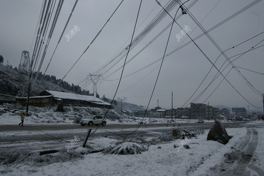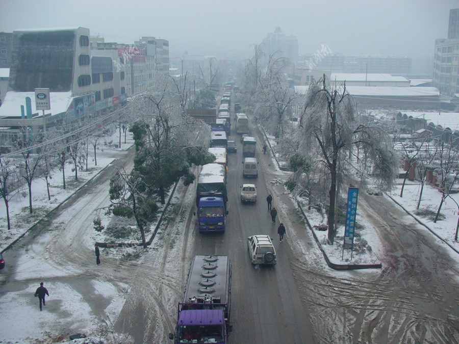 2008年2月1日,郴州城区的电线都被大雪压垮。
