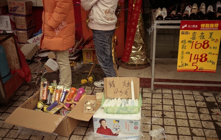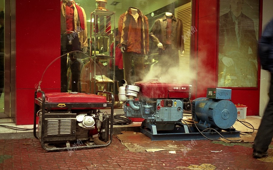 2008年1月31日,郴州市文化路,商户们自己买来发电机,保障生意正常进行。