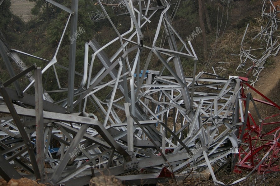 2008年2月23号,冰灾中,郴州市500千伏电塔几乎全部倒塌,全市停水停电达半个多月。