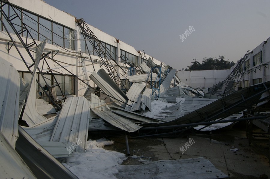 2008年2月15日,郴州市被大雪压垮的工厂。
