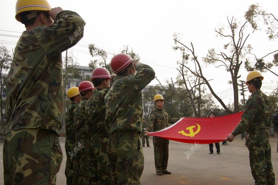 2008年2年14日,支援郴州抗冰救灾电力枪修的武警部队战士火线入党。